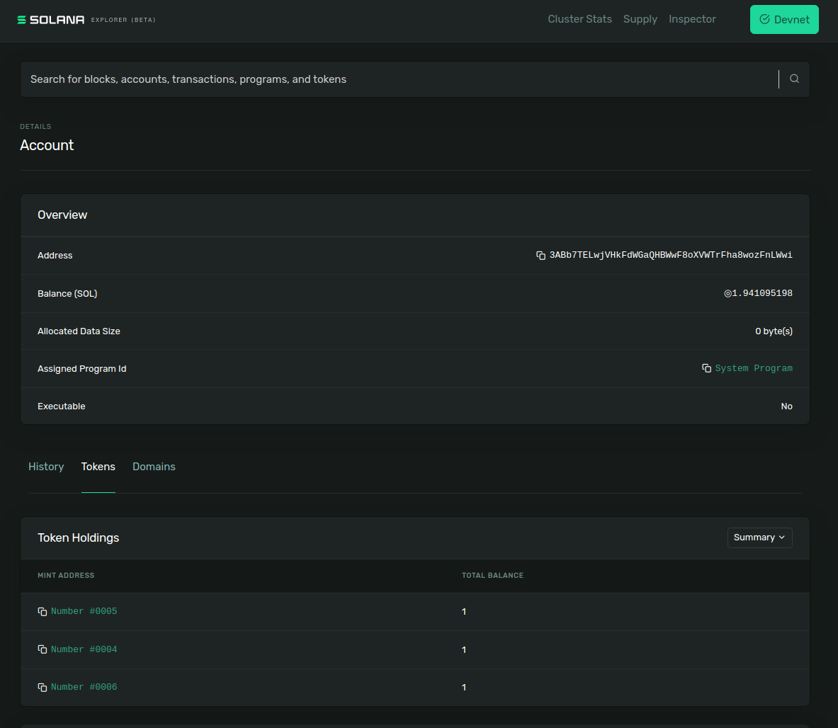 Finally we can explore our Candy Machine and the minted tokens using the Solana explorer.